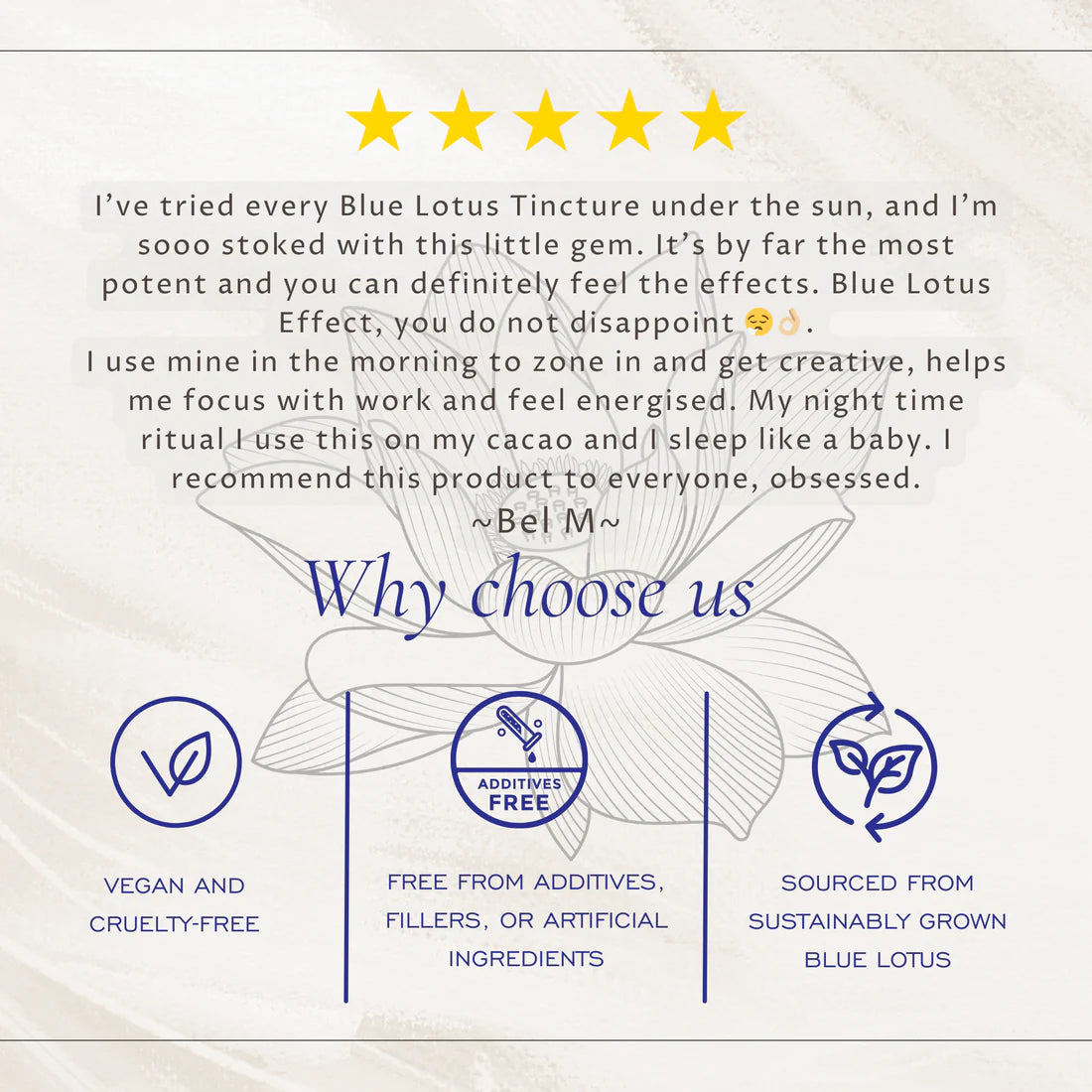 - Blue Lotus Flower Extract (Nymphaea caerulea) – 1:4 potency